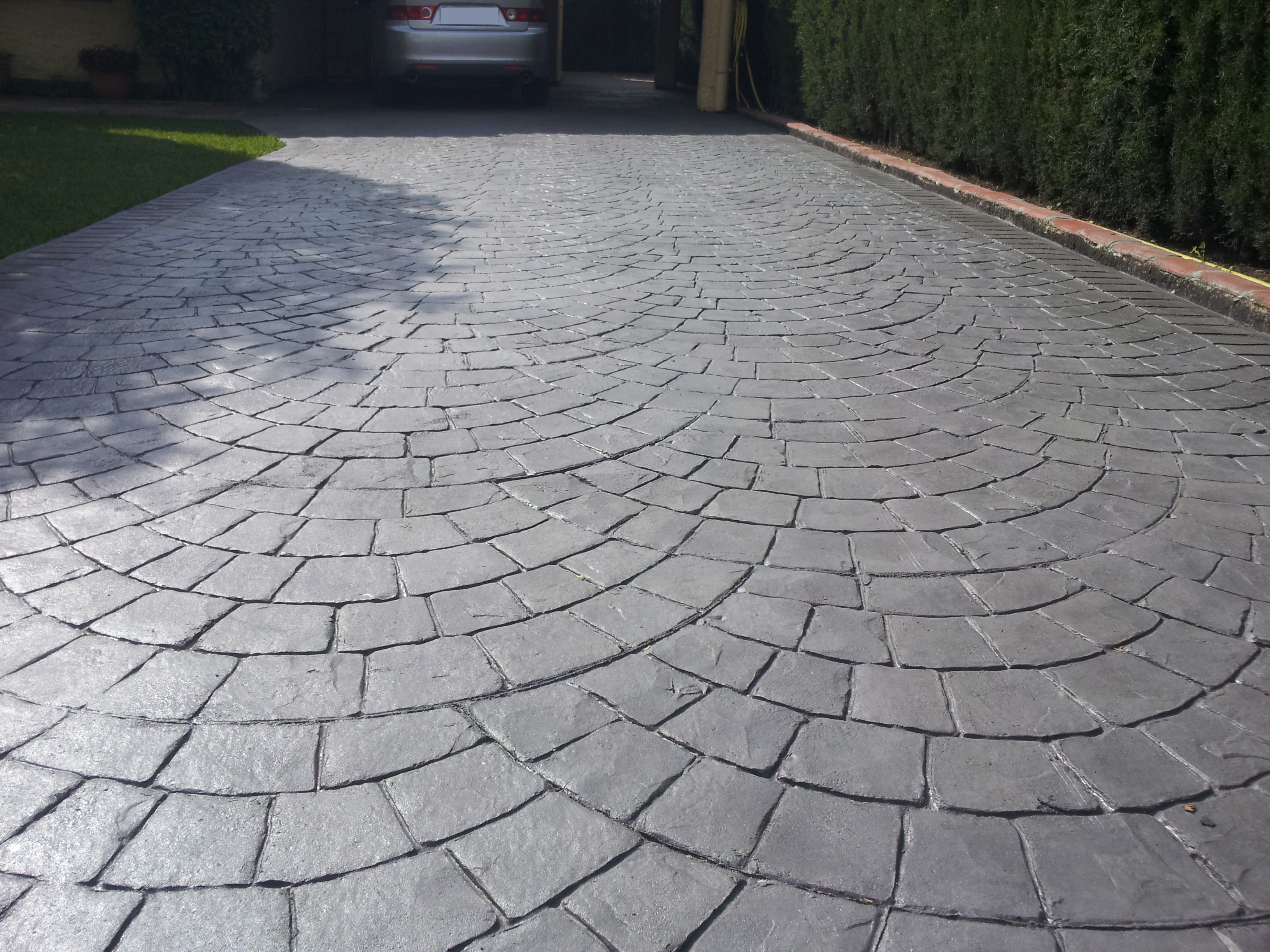 El hormigón impreso es una solera cuya superficie viene pigmentada y tiene un "bajorrelieve", grabado mientras está fresco mediante moldes de neopreno que simulan las piezas y texturas más variadas. La estampación puede imitar adoquines, piedra, baldosas, pizarra, etc... Al ser antideslizante, también da excelente resultado en la zona de la piscina. La clave de este pavimento es la capa superficial endurecedora y coloreada, que viene en polvo ya preparada de fábrica.